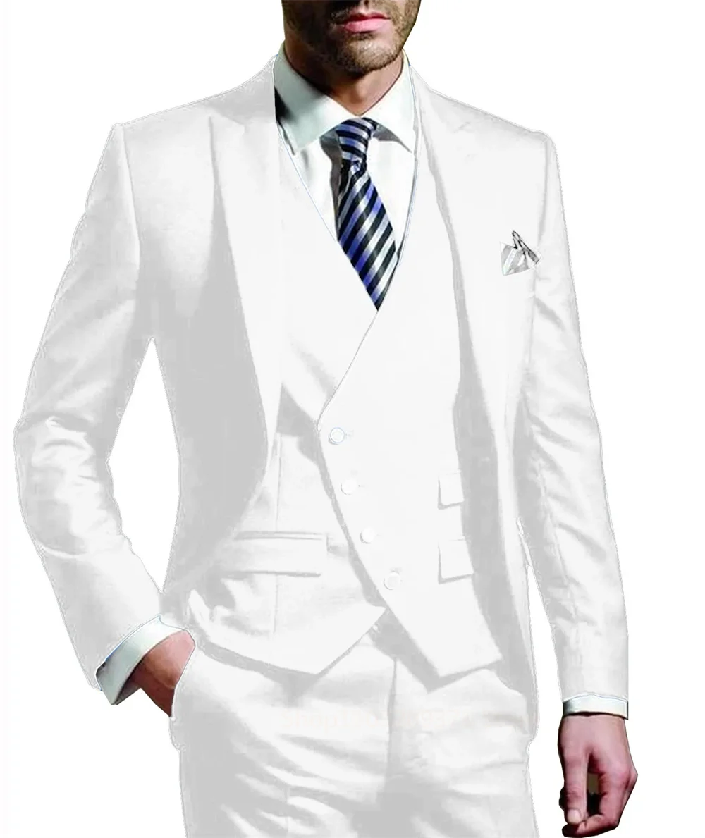 3 Pieces Men's Suit Fashion Wedding Groom Tuxedos Groom Tailor Made (Blazer+Pants+Vest) Full Set Elegant Suit for Men