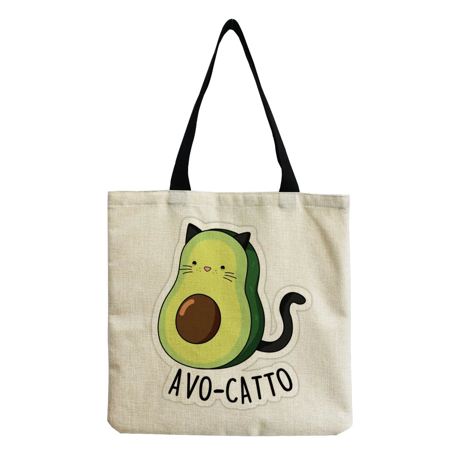Cartoon Avocado Fashion Fruit Printed Shopping Bag Outdoor Portable Women Shoulder Bag Eco Friendly High Capacity Foldable Tote