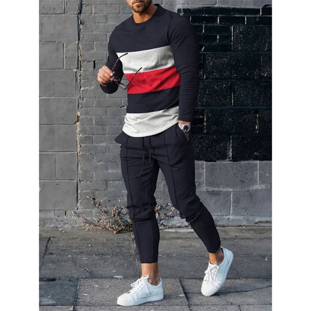 Fashion Mens Two Piece Sets Graphic Printed T-Shirts And Slim Pants Suits For Men 2023 Spring Autumn Clothing Casual Streetwear