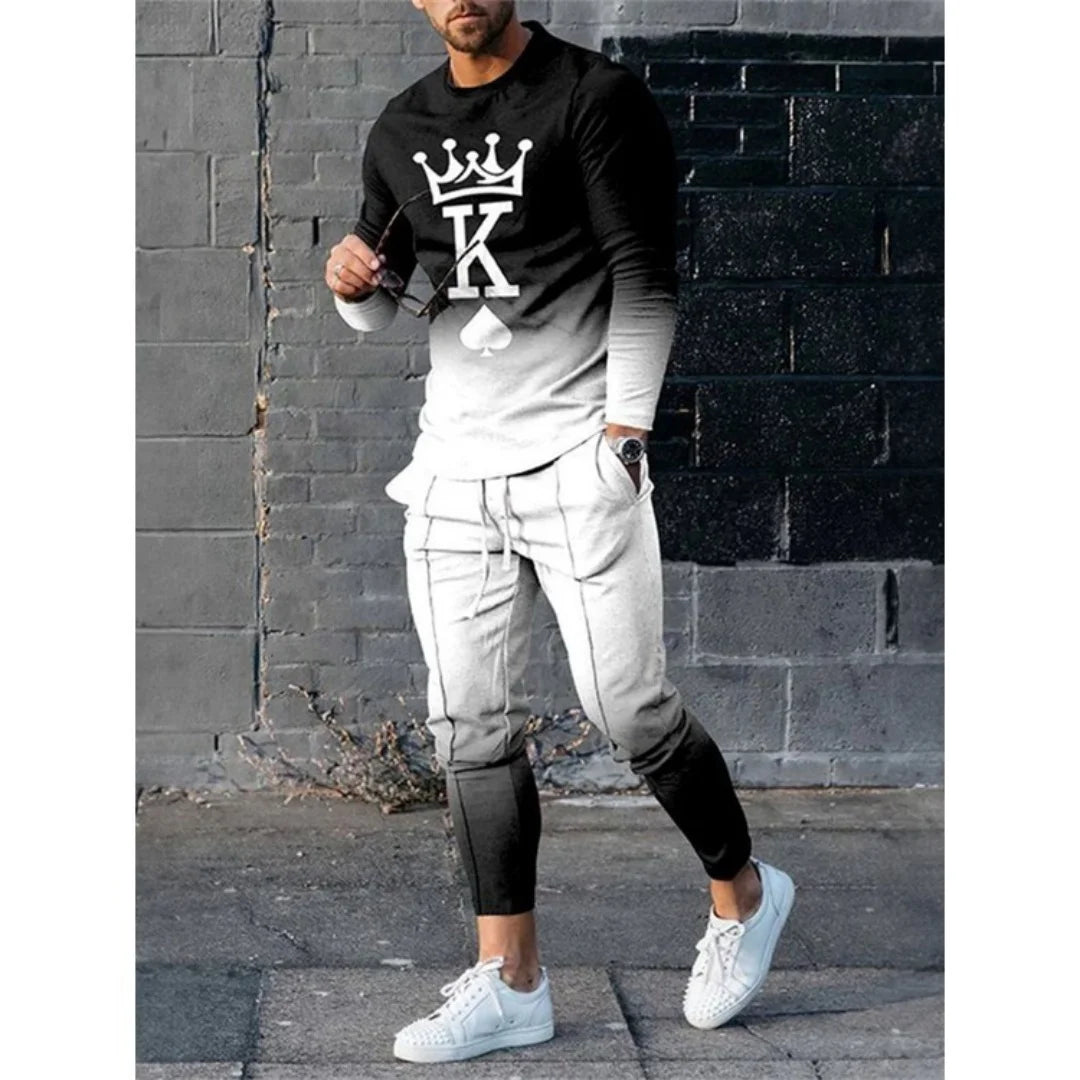 Fashion Mens Two Piece Sets Graphic Printed T-Shirts And Slim Pants Suits For Men 2023 Spring Autumn Clothing Casual Streetwear