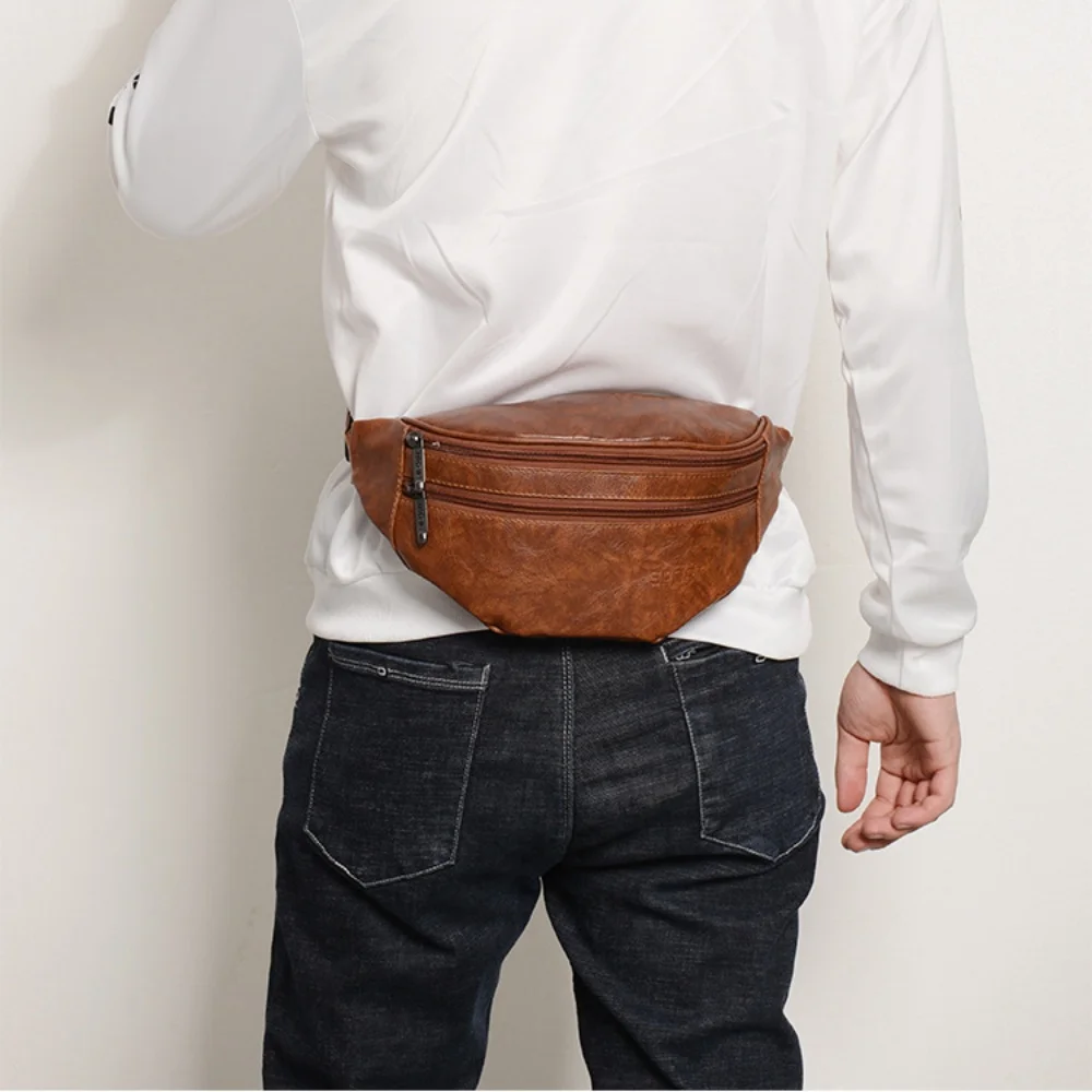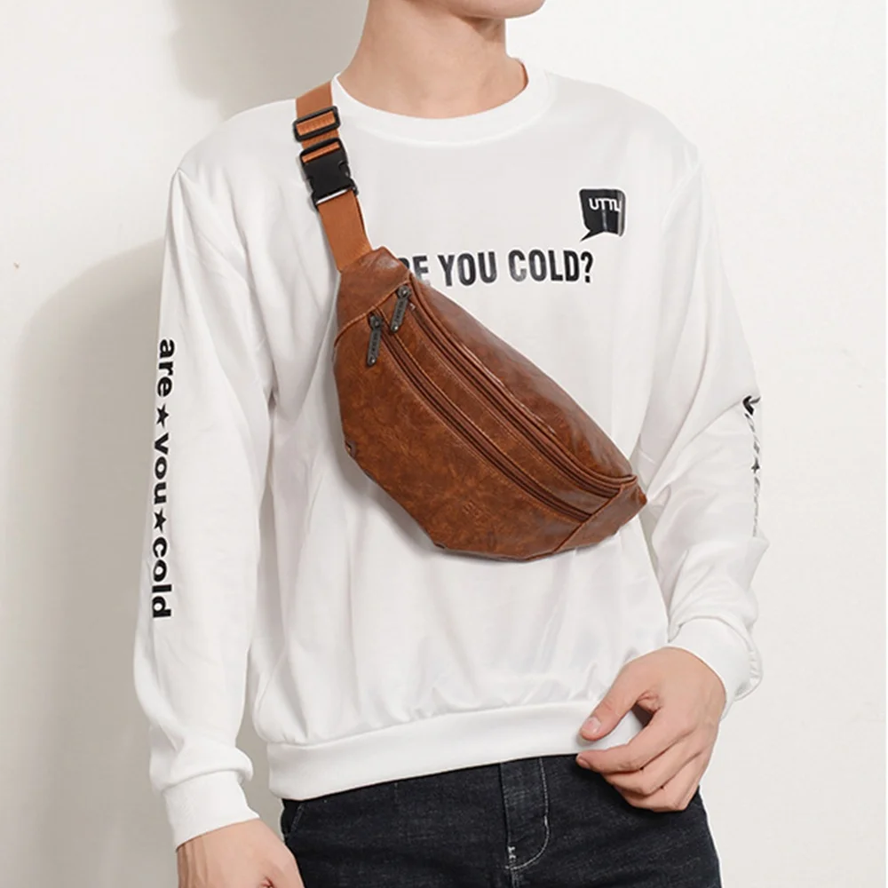Men's Fanny Pack Fashion Style Men's PU Waist Bags Fanny Pack Travel Belt Purse Shoulder Bags Tote Waist Bag Men's Gift