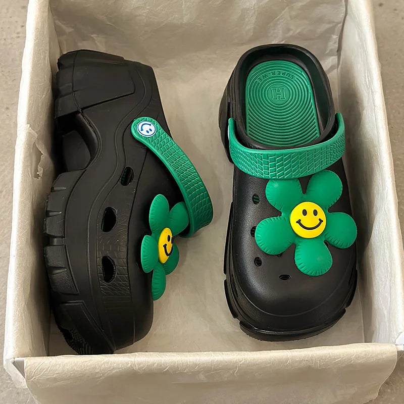 Women Beach Sandal Summer Half Slipper Girl Super Thick Bottom Hole Sandal EVA Female External Wear 7CM Height Increase Shoes
